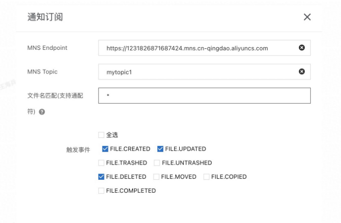 如何配置事件通知规则?某企业在华东1(杭州)地域创建了名为xxxx的域,该企业期望能够对于上传文件成功之后,进行二次确认,并做一些数据统计相关事项,因此他们比较关心文件的创建、删除、更新的事件。那么,该如何通过相册与网盘服务配置事件通知规则呢?