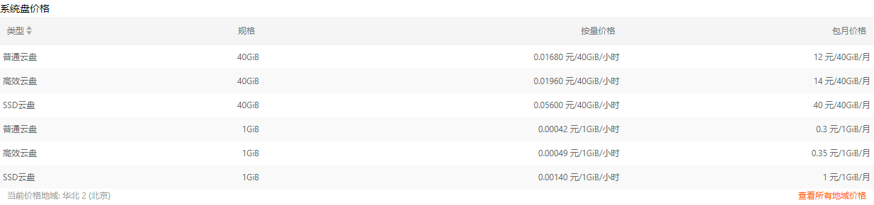 云盘(系统盘)租用需要花多少钱?价格如下: