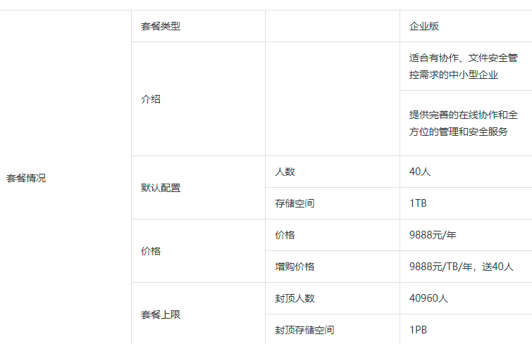企业云盘3TB单月价格,一个月2472元;三个月7416元;一年29664元。