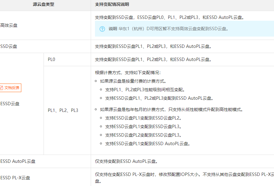 只支持以下云盘变配操作,不支持降配等其他变配操作:注意:云盘变配前,建议您为云盘创建快照备份数据。