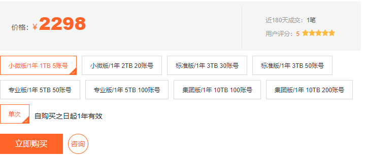 阿里云企业网盘的优惠折扣!阿里云企业网盘最新价格为2298.00元/年。如果你对阿里云企业网盘感兴趣,现在立即咨询在线客服,享8折优惠,仅需1838.40元一年。典名科技是阿里云的旗舰级合作伙伴,通过典名科技的链接购买阿里云企业云盘可以享受8优惠。在官方活动外,再享受典名科技的优惠,相当于折上折,能为企业节省大量云产品费用的支出。